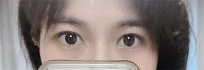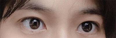 因為眉毛和眼睛之間的距離比較短,所以雙眼皮沒有做得更大,而是調整到對稱。