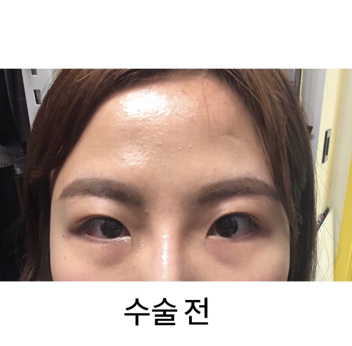 因為睜眼力量比較弱,所以做了非切開眼型矯正。我因為右眼有點長針眼,所以手術當天好像比其他人更腫、瘀青更嚴重。