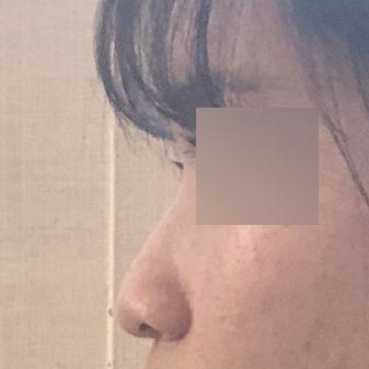 手術前,鼻樑有駝峰,鼻尖圓鈍且下垂,感覺鼻子被壓扁了,而且鼻子較長,整體看起來臉有點長?