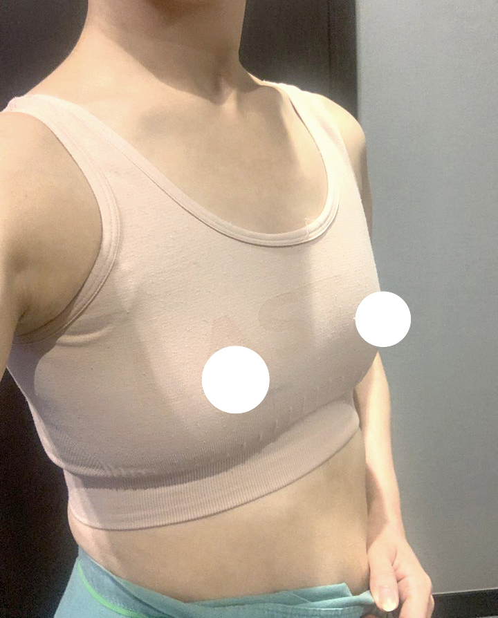 院長在複診時說我的胸部沒有下垂,而且很緊實,乳頭位置也很好。胸部變大後,我沒有感到不便,而且跳芭蕾時也完全沒有妨礙,這點讓我很喜歡!