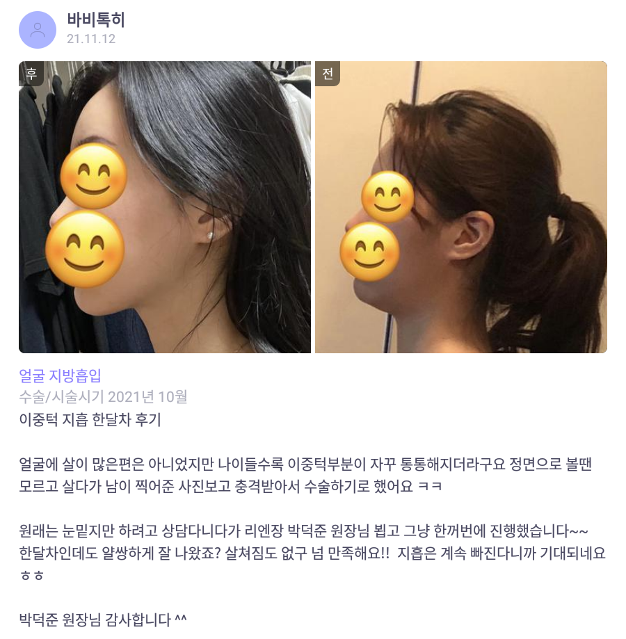 [바비톡] 얼굴지방흡입 / 1개월차/ 닉네임:바비톡히