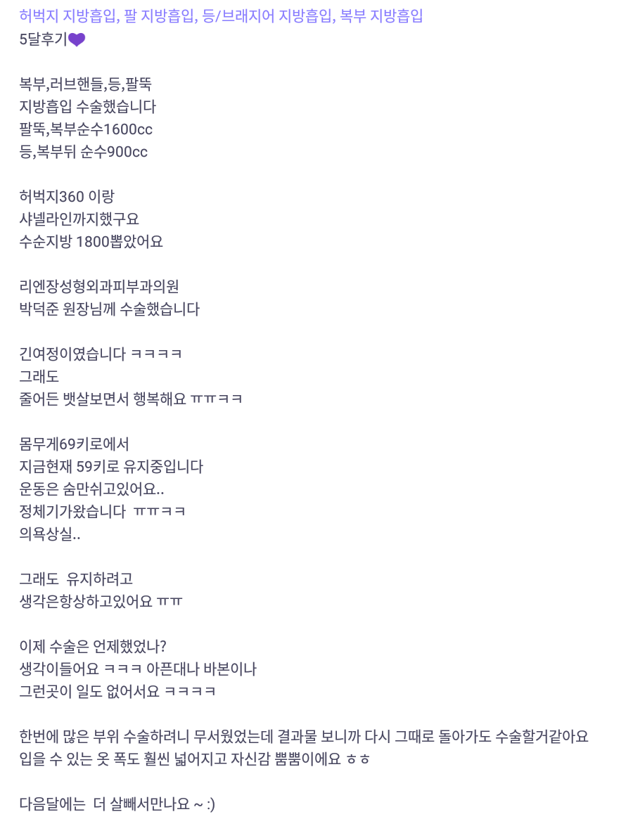 [바비톡] 복부, 팔뚝 지방흡입 / 5개월차/ 닉네임:먹지마아는맛