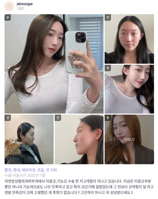 [바비톡] 코성형(기능코+미용코) / 2개월차 / 닉네임 : atmospe