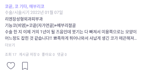 [바비톡] 코성형 / 1년차/ 닉네임:atmospe