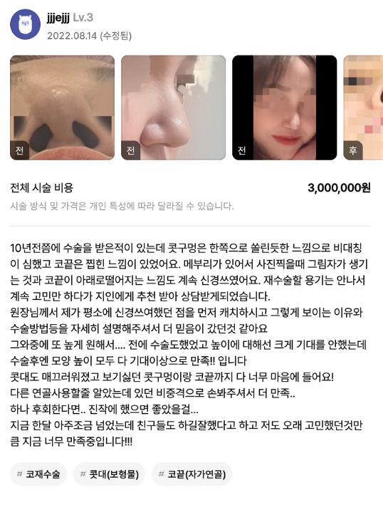 [강남언니] 코재수술 / 1개월차/ 닉네임: jjjejjj