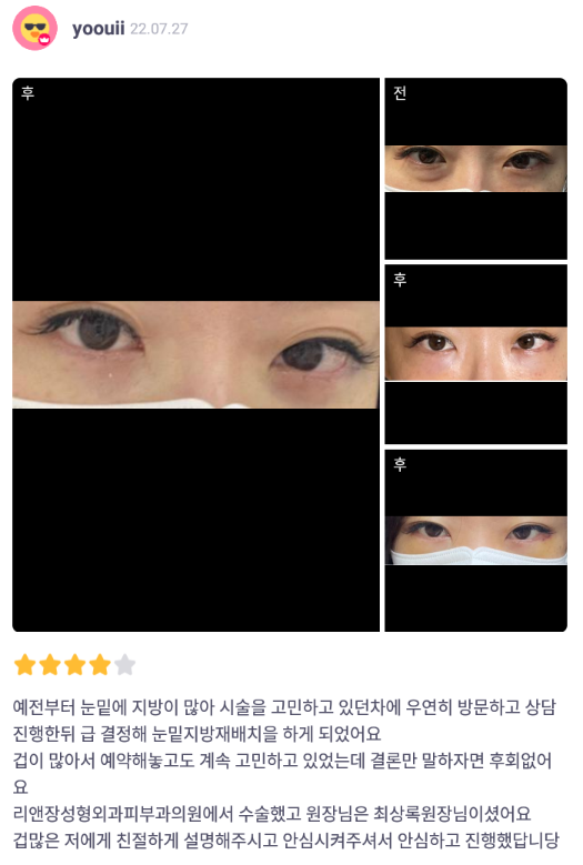 [바비톡] 눈밑지방재배치 / 1개월차/ 닉네임: yoouii
