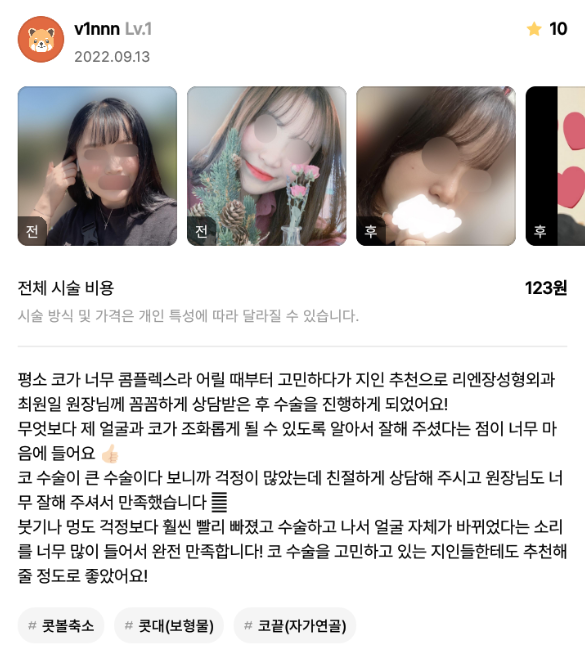 [강남언니] 코성형 1개월차 / 닉네임 : v1nnn