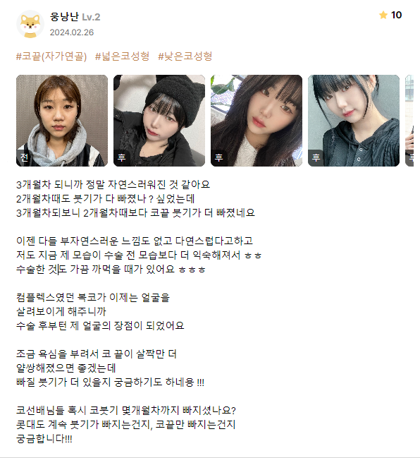 [강남언니 후기] 코성형 / 3개월차 / 닉네임:웅낭난