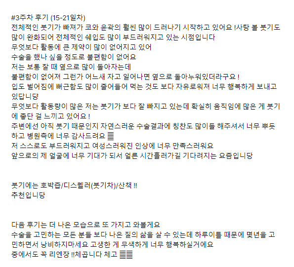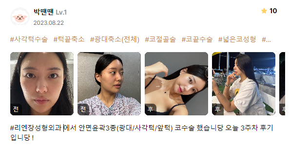 麗延長整形外科 ★★★★★ 5.0 [강남언니 후기] 윤곽3종(광대,턱끝,사각턱), 코성형 / 3주차 / 닉네임:박땐땐 匿***@ | 2024.03.07 | 20 返回評價列表