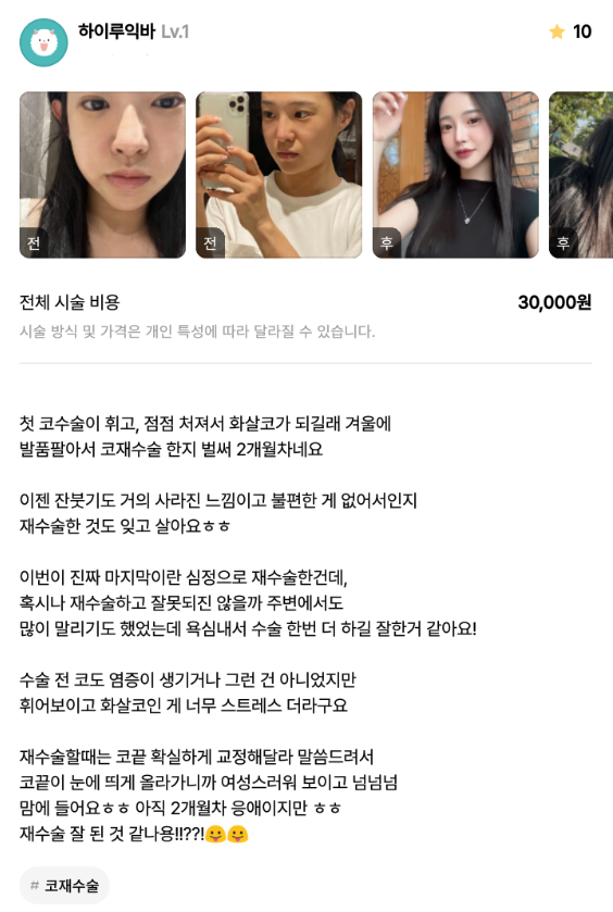 [강남언니] 코재수술 / 2개월차 / 닉네임 : 하이루익바